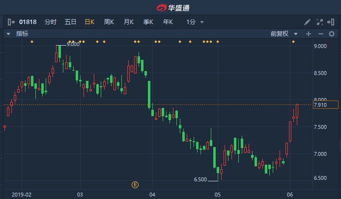 智通财经APP获悉,招金矿业(01818)尾盘直线拉升,截至15时42分,涨3.77%,报7.98港元,成交额达7807万港元。