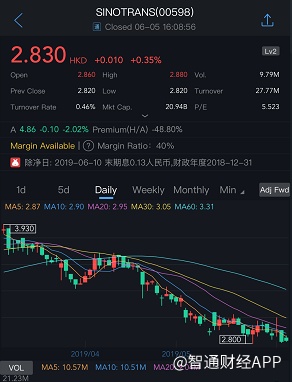 截至今日收盘,中国外运(00598)涨0.35%,报2.83港元。