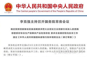 国务院总理李克强6月5日主持召开国务院常务会议,确定按照创新驱动发展战略要求把大众创业万众创新引向深入的措施;部署抓好农业生产、保障农产品有效供给,要求全面做好防汛抗旱工作;通过《中华人民共和国固体废物污染环境防治法(修订草案)》。