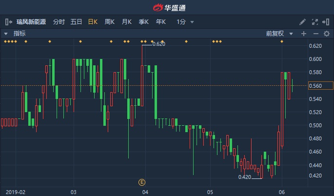 港股异动︱瑞风新能源(00527)回吐逾10% 失守年线