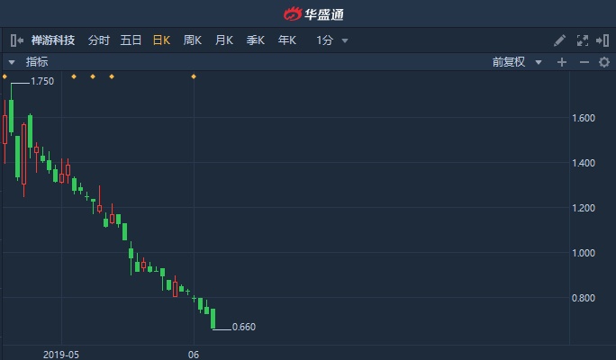 智通财经APP获悉,禅游科技(02660)全天下探,午后更创历史新低0.65港元,截至13时54分,跌10.96%,报0.65港元,成交额达289.2万港元。