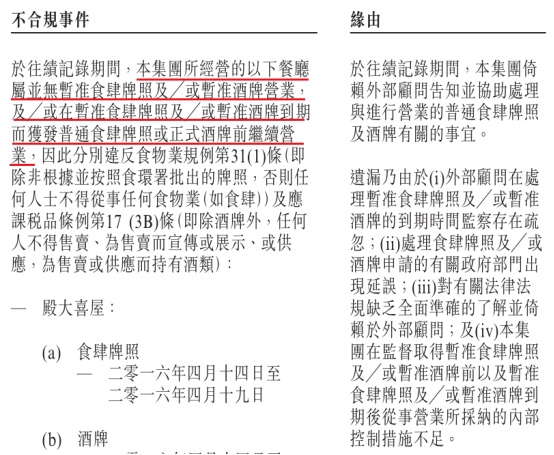 例如,近10年的发展期间,大喜屋也曾出现无牌照经营的不合规情况。若未来公司上市,此类事件或将对公司股价造成影响。