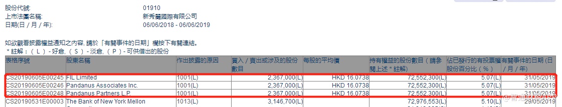智通财经APP获悉,根据联交所资料显示,富达于5月31日增持新秀丽(01910)236万股,每股作价16.07港元,总值约3792.5万港元,最新持股数目7255万股,最新持股比例为5.07%。