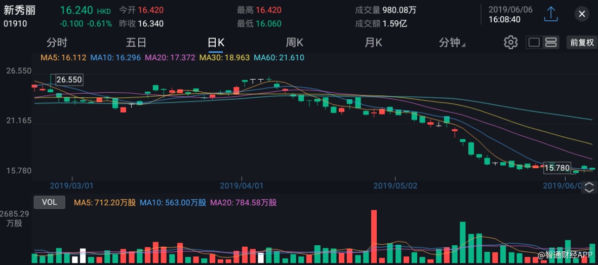 截至今日收盘,新秀丽(01910)跌0.61%,报16.24港元。