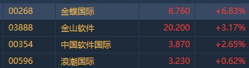 智通财经APP获悉,软件板块盘中强势走高,截至发稿,金蝶国际(00268)涨6.83%,金山软件(03888)涨3.17%,中国软件国际(00354)涨2.65%。