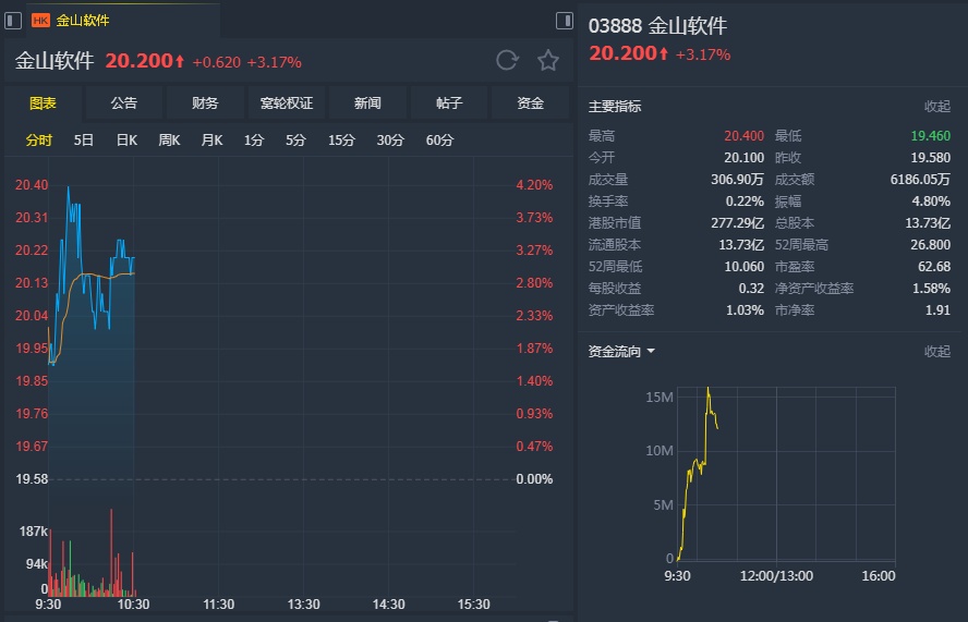 智通财经APP获悉,招商证券(香港)发表研究报告,称WPS在科创板上市是金山软件(03888)的一剂强力催化剂,并可能提供短期交易性机会,维持对其“买入”评级,目标价26港元。公司当前估值为48倍FY19EP/E。