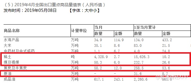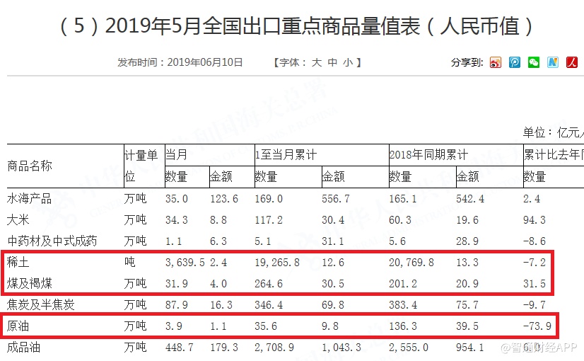 另外,5月原油出口为3.9万吨,累计金额为1.1亿元,4月时无出口原油;煤及褐煤出口31.9万吨,累计金额为4亿元,较4月的50.3万吨下降37%,较4月的6亿元减少2亿元。