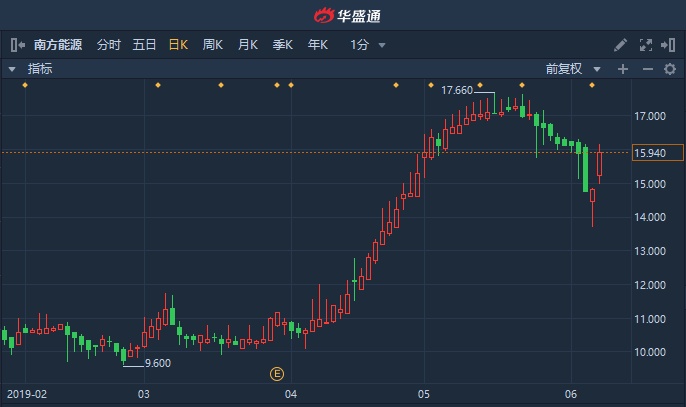 智通财经APP获悉,南方能源(01573)上一交易日探底回升后,今日强势冲高,截至15时17分,涨7.41%,报15.94港元,成交额达1114万港元。