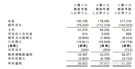 招股书显示,2016年至2018年,勋龙模具实现收入1.31亿、1.78亿、2.17亿元人民币(下同),年复合增长28.7%,毛利润0.51亿、0.66亿、0.73亿元,相应毛利率38.9%、37.1%、33.6%,经调整净利润0.26亿、0.35亿、0.38亿元,净利率19.8%、19.7%、17.5%。