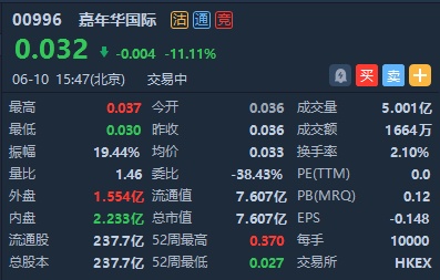 港股异动︱细价股嘉年华国际(00996)逆市挫逾11% 逼近历史低点