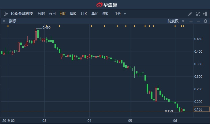 智通财经APP获悉,民众金融科技(00279)延续低迷走势,盘中跌幅一度逾7%,创下历史新低0.159港元,截至15时54分,跌5.85%,报0.161港元,成交额达225万港元。