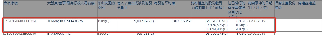 智通财经APP获悉,根据联交所资料显示,摩根大通于6月3日增持招金矿业(01818)180万股,每股作价7.53港元,总值约1355万港元,最新持股数目约6459万股,最新持股比例为6.15%。