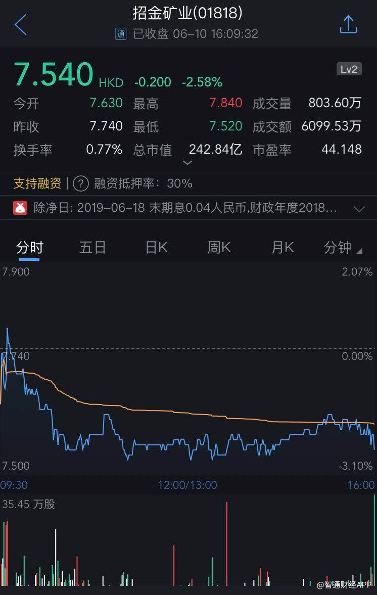 截至今日收盘,招金矿业(01818)跌2.58%,报7.54港元。