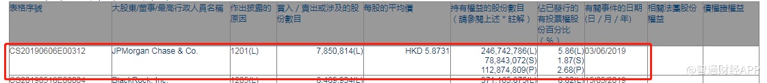 智通财经APP获悉,根据联交所资料显示,摩根大通于6月3日减持中国中铁(00390)785万股,每股作价5.87港元,总值约4607万港元,最新持股数目约2.46亿股,最新持股比例为5.86%。