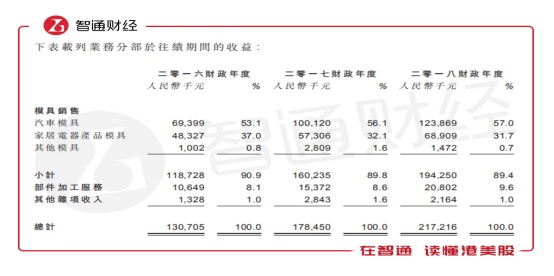 其中,来自汽车模具的收入分别达到6939.9万元人民币(单位下同)、1亿元和1.24亿元,热压模具销售分别占公司汽车模具收益的85.3%、83.5%及80.9%。