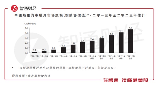 根据弗若斯特沙利文的报告,汽车模具分类包括热压模具、冷压模具、铸造模具、注塑模具以及液压模具等。