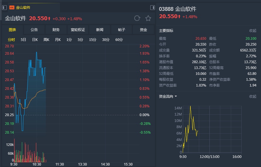 智通财经APP获悉,摩根士丹利发表研究报告称,金山软件(03888)正将其核心价值业务由网游扩大至办公室软件。同时,公司拥有两个短期正面因素,包括:将于明日(12日)推出手游《剑网3指尖江湖》,以及7月后上市的北京金山办公软件(WPS)。