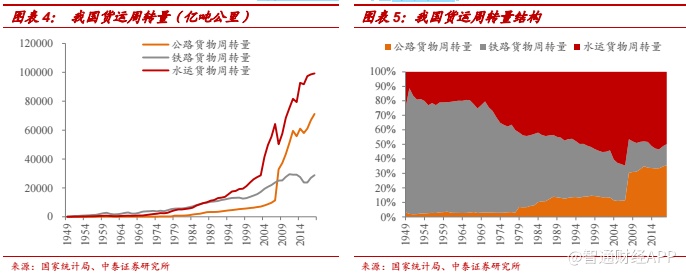 当前公路货运结构性的替代已经完成。一方面,随着公路网络的建设与公路运输的发展,我国公路货物周转量已经完成了对铁路等其他运输方式的替代,当前占我国货运周转量的比例已经维持在 35%左右的水平。另一方面,由于重卡的运输效率高于中卡,在卡车内部 2008 年前后我国重卡已经完成了对中卡的结构性替代,保有量中中重卡比重约为 1:5,销量比重约为 3:7(除特殊年份)。