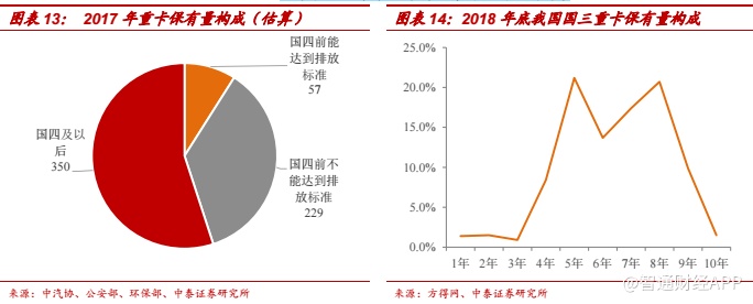 未来三年将以环保因素主导的更新需求为主。截至 2018 年底,我国国三重卡保有量为 155.6 万辆,其中接近 85%是五年及以上车龄的重卡。考虑到 2021 年 7 月 1 日前全国实施国六 a,车辆本身的更新需求叠加政策拉动,未来三年将主导行业的更新需求。