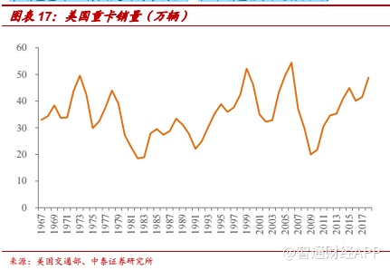 重卡行业仍将周期波动。重卡行业的投资品属性,排放升级、超载治理等事件性因素以及运价变化等影响盈利水平的因素都会使得提前或者延后更新需求,行业销量仍将大幅波动。以成熟市场的美国为例,美国重卡销量基本以自然更新需求为主,但年销量依然波动较大。