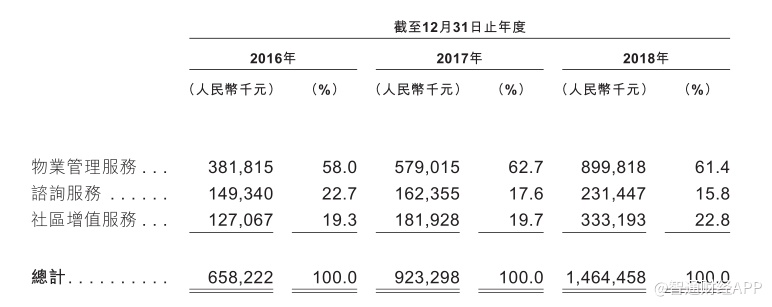 集团的物业管理服务部分收入2018年为约9亿元,而2017及2016分别仅为约5.8亿及3.8亿元。