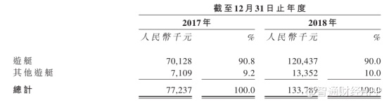 下表载列于业绩记录期间海星游艇按产品类型划分的收益明细: