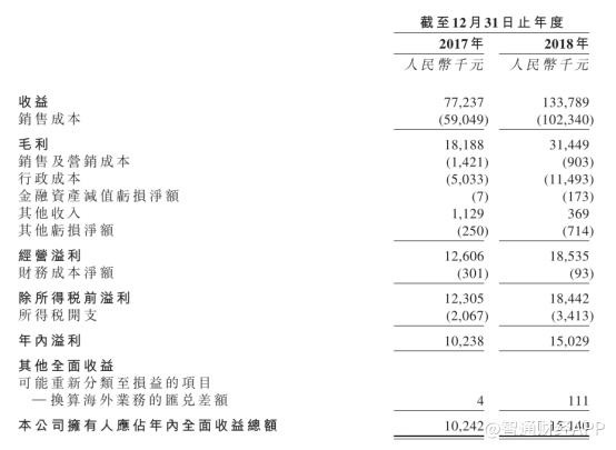 于截至2017年及2018年12月31日止年度,该公司的毛利分别约为人民币1818.8万元及人民币3144.9万元,而毛利率则维持于约23.5%。