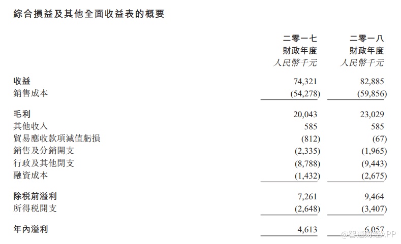 数据显示,于2017财政年度及2018财政年度,集团收益分别为人民币7432万及人民币8288万,相当于上升约11.5%;公司拥有人应占利润分别为人民币461万及人民币605万,相当于上升约29.5%。