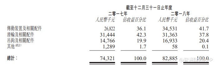 集团主要获利产品为:1)传动装置及相关配件;2)滑轮及相关配件;3)吊钩及相关配件。于往绩记录期间,产品收益明细如下: