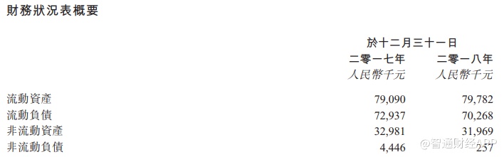 于2017财政年度及2018财政年度,集团流动负债从人民币7293万下降3.66%至人民币7026万;非流动负债从人民币444万下降至人民币25万。