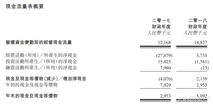 在现金流量数据方面,集团于2017财政年度获得经营现金流出人民币2787万。集团在招股书中表示,主要由于贸易及其他应收款项增加。