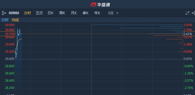 智通财经APP获悉,龙湖集团(00960)市前现2宗大手成交,每股作价28.925元及29.00元,共涉及500万股,共涉资1.45亿元。截至9时42分,涨2.41%,报价29.7港元,成交额1.693亿。