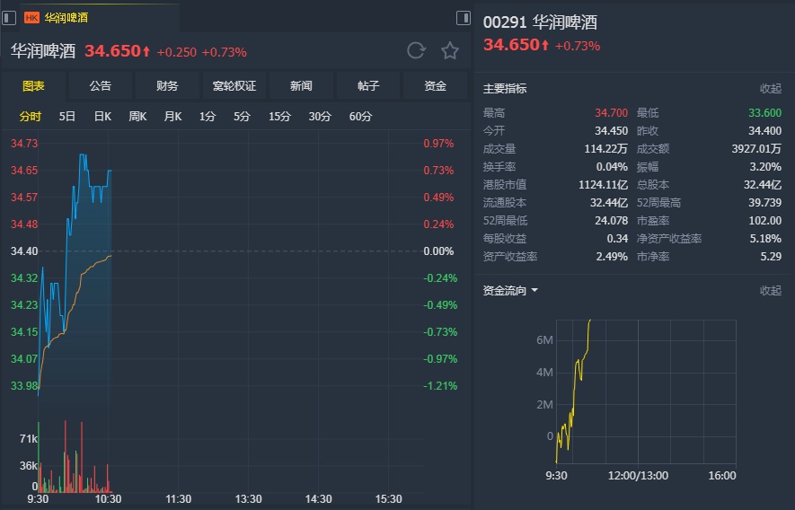 智通财经APP获悉,高盛发表研报称,周一(10日)在大湾区企业日上,据华润啤酒(00291)介绍,年初至今其销量增长与市场整体增长一致,而4月及5月销量有轻微下跌,但跌幅低于市场跌幅。平均售价约有3%的增长,产品组合升级继续成为增长的动力。