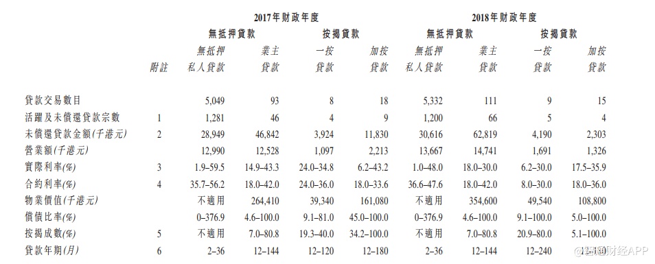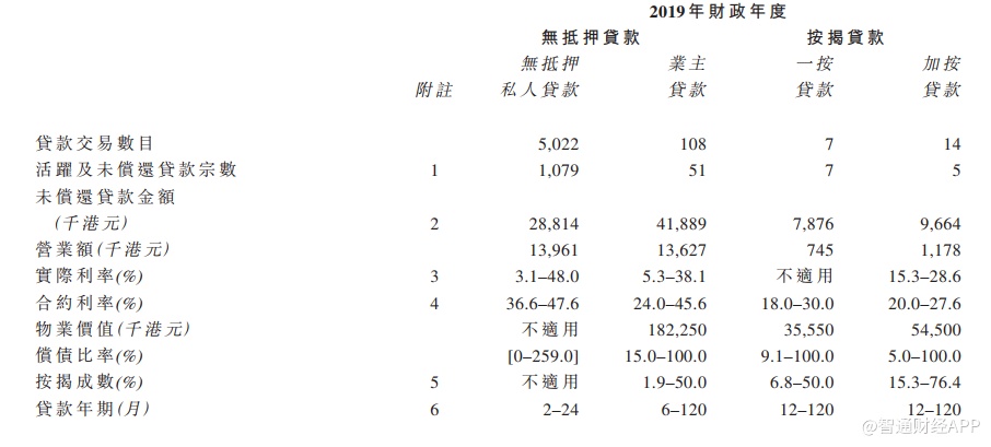 智通财经APP发现,招股书显示,于2017、2018及2019年财政年度,无抵押私人贷款的营业额分别约为1300万港元、1370万港元及1400万港元(预算);业主贷款的营业额分别约为1250万港元、1470万港元及1360万港元(预算)。在2017、2018以及2019财政年度,活跃及未偿还无抵押私人贷款数目分别占无抵押私人贷款交易数目的25%、22%及21%。