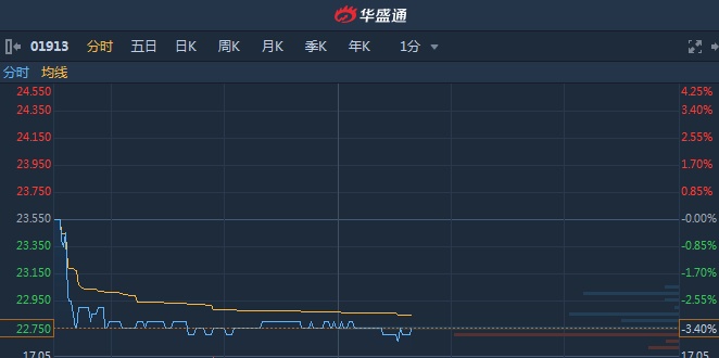 港股异动︱盘中现大手成交涉资2266.11万 普拉达(01913)现跌3.4%