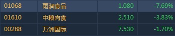 港股异动︱猪肉概念随A股再度走弱 雨润食品(01068)现跌7.69%