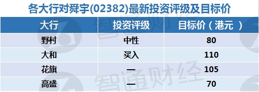 二、各大行对舜宇(02382)最新投资评级及目标价: