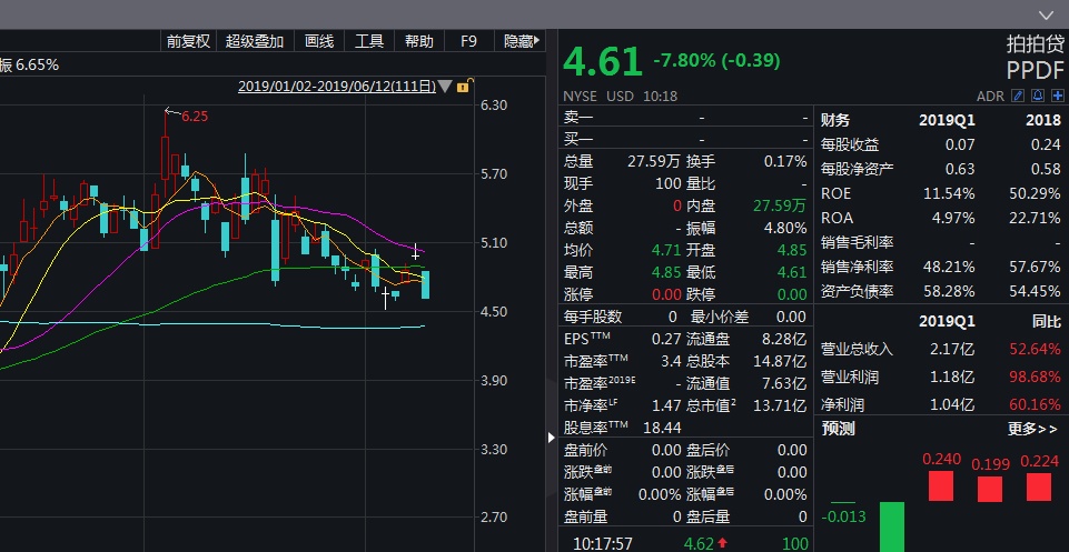 智通财经APP获悉,周三美股开盘后,拍拍贷(PPDF.US)股价便持续走低,截至发稿已跌逾8%。尽管消息面尚无重大利空,甚至有平台将该公司安排在所谓某榜单中的较高位置,但该公司股价仍旧大幅调整。进入5月来,该公司股价已走出下跌趋势。