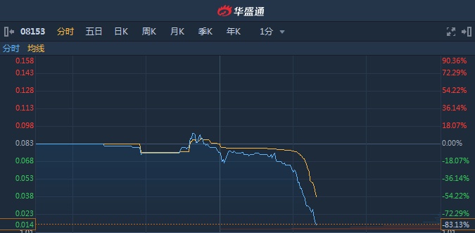 智通财经APP获悉,创业板细价股科地农业(08153),午后股价快速下挫,盘中低见0.12港元,创历史新低。截至14时18分,跌83.13%,报价0.014港元,成交额1998万。