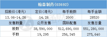 智通财经APP获悉,6月13日,翰森制药(03692)配售结束。配售招股价区间为13.06-14.26港元,最终定价14.26港元,每手28520港元。