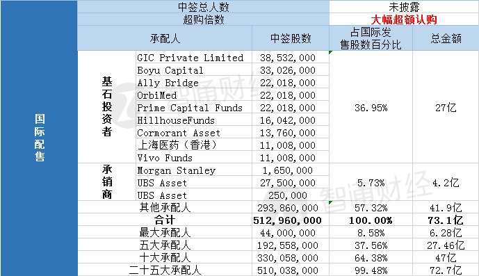 国际配售中签人数未披露,获大幅超额认购。