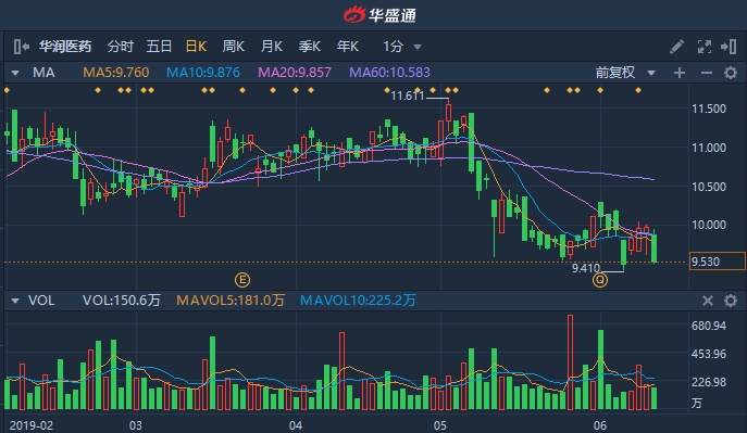 港股异动︱华润医药(03320)随市挫近5% 失守全部均线