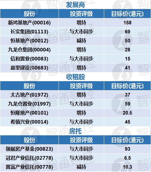 一、大摩对香港地产股最新评级及目标价: