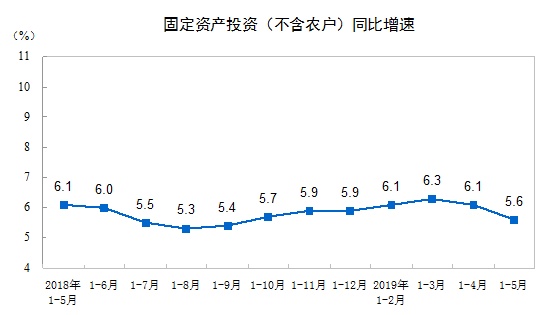 2019年1—5月份全国固定资产投资(不含农户)增长5.6%