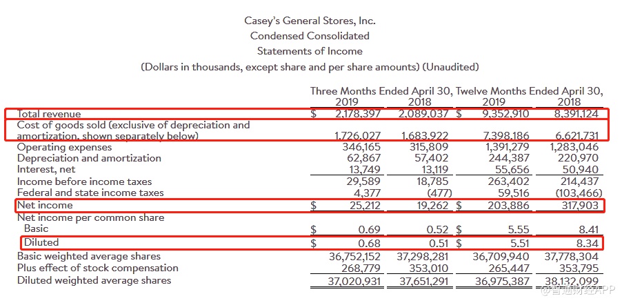 智通财经APP获悉,Casey's General Stores, Inc.(CASY.US)于6月11日公布2019财年第四季度以及年度业绩报告。公司总收入和每股收益超出分析师预期,令人惊喜。