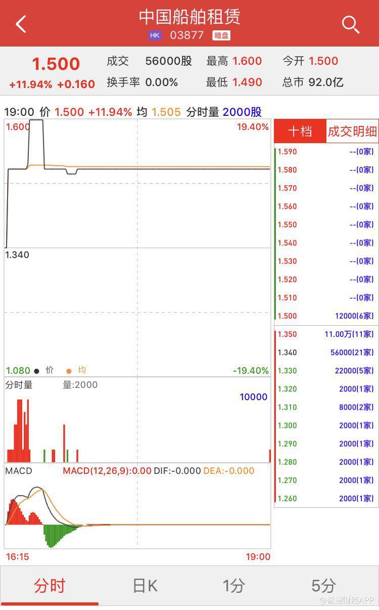 智通财经APP获悉,中国船舶租赁(03877)将于6月17日挂牌,上市前夕,其暗盘收报1.34港元,较招股价1.34港元,无涨跌,每手2000股。