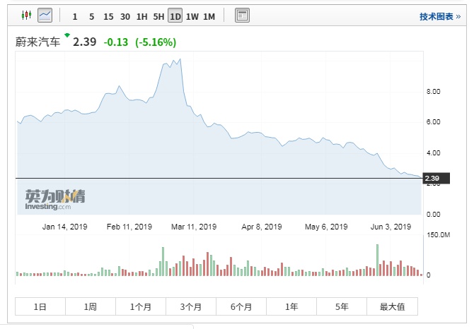 智通财经APP获悉,受ES8在武汉市自燃的事件影响,蔚来(NIO.US)开盘大跌,截止到发稿,跌5.16%,报2.39美元,创历史新低。