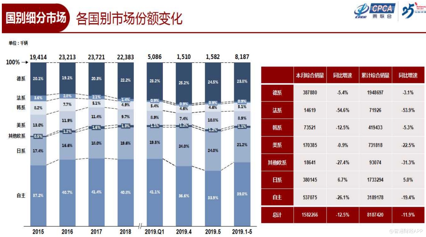 根据乘联会数据,2019年首五个月,实现正向增长的仅有日系车,主要是丰田及本田的销量带动。首五个月,广汽丰田销量增长25.12%,广汽本田销量增长18.3%,东风本田销量增长11.89%,而东风日产及一汽丰田销量变化不大,日系车合计销量约为173.33万辆,同比增长5%。