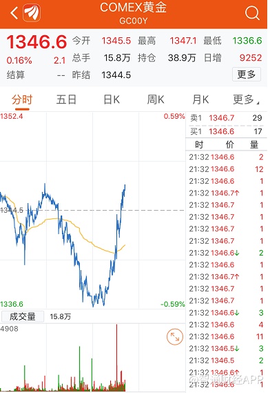 美伊冲突再度激化,地缘危机风云再起,刺激黄金价格走势再现V型反弹。截至发稿,黄金期货报1346.6美元/盎司。