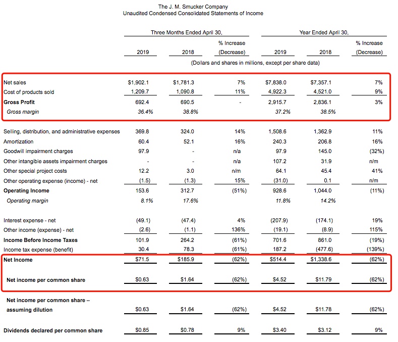 智通财经APP获悉,斯马克公司(J.M.Smucker)(SJM.US)此前公布了2019财年第四季度以及年度业绩报告。其中,第四季度的调整每股收益超出分析师预期,但是销售总额不及预期。